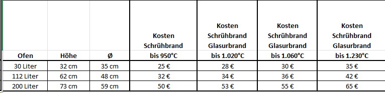 Unser Brennservice bietet Ihnen die Möglichkeit, Ihre Keramikarbeiten brennen zu lassen. Momentan haben wir 3 Öfen in 3 verschiedenen Größen in Gebrauch, die jeweils mit den gewünschten Temperaturen gebrannt werden können. Es ist immer ein kompletter Ofen zum Fixpreis zu buchen. Der Fixpreis beinhaltet dann Stromkosten, Ein- und Ausräumen, Ofensäuberung etc.