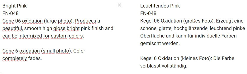 FN-048 – Bright Pink – MAYCO Foundations – glänzend – NONTOXIC – FoodSafe – 1.000 bis 1.045 °C - Cone 06 bis Cone 05 (höher siehe Fotos) – 4oz = 118 ml